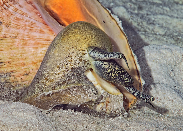 La caracola reina es un grande, marina, molusco gasterópodo marino que tienen una concha externa, en forma de espiral con un rosa brillante en el interior y exterior naranja. Sus caracoles alcanzan tamaño completo en un alrededor de 3 a 5 años de edad, creciendo a un máximo de alrededor de 30,4 cm de largo y un peso de alrededor de 2,3 Kg.